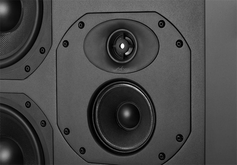 The HT82’s midrange/tweeter baffle can rotate 360 degrees for horizontal or vertical placement in cabinetry—maintaining the proper sonic vertical alignment of the mid-range and tweeter. The baffle may also be angled for more accurate imaging when the speaker is far off-axis.